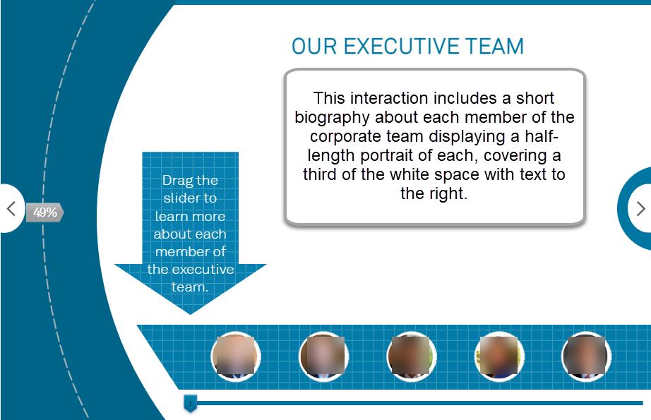 Adept at creating interactive and engaging self-paced courses, including scenario-based interactions, simulations and soft skills training. Courses I have developed have proven to be extremely effective and have been well received by clients, stakeholders, and executive leadership teams. This positive feedback has led to more complex and sophisticated projects.